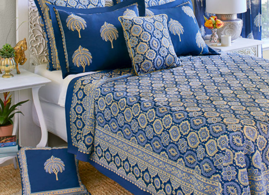 Rooted in the heart of Jaipur, our collection celebrates India’s rich hand-block printing heritage. Each piece—be it a luxurious bedspread, elegant tablecloth or charming cushion—is crafted with 100% cotton and infused with joy, color and artisan soul.