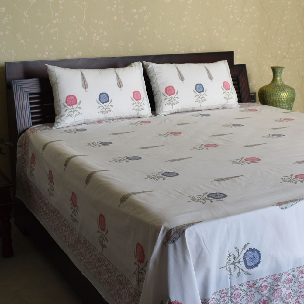 About Hand Block Printing: Hand Block Printing is one of the oldest and most intricate textile printing methods, requiring great skill and patience. This time-honored process involves manually stamping designs onto fabric using carved wooden blocks. The result is a breathtaking, richly detailed pattern that makes each bedspread a unique work of art.
